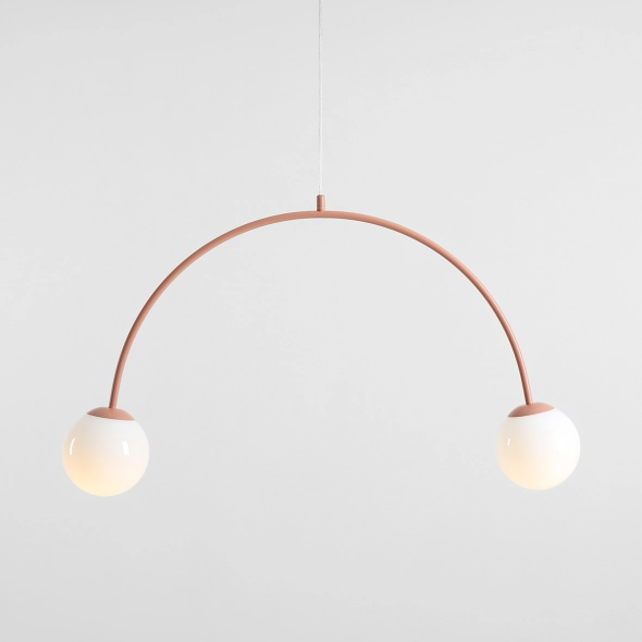 Lampa wisząca Una 2 Coral sprawdzi się świetnie do m.in. salonu, sypialni, jadalni lub przestrzeni użyteczności publicznej tj. kawiarnie, hole. Modny kształt łuku przyciąga wzrok, a białe klosze pięknie rozpraszające światło, tworzą kameralną atmosferę wnętrza.