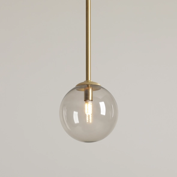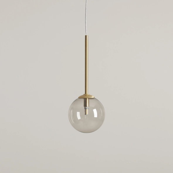 Lampa Bosso Multicolour Smoky, to bardzo starannie wykonana pojedyncza lampa wisząca z matowym, transparentnym kloszem w dymionym, szarym kolorze. Jej głównymi atutami są: barwny klosz z polskiej huty oraz wyszlifowany mosiądz o matowym wykończeniu. Wysokość lampy można dowolnie wyregulować.