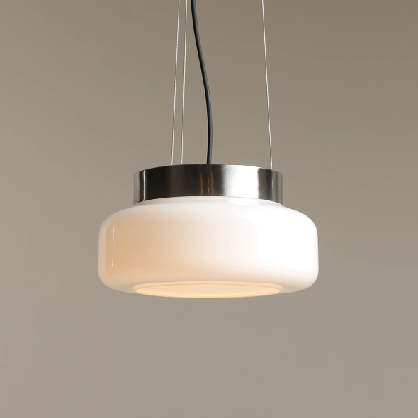 Lampa wisząca z białego, opalowego szkła BONBON M ALMOND proj. Mikołaj Nicer (Nicer Design)