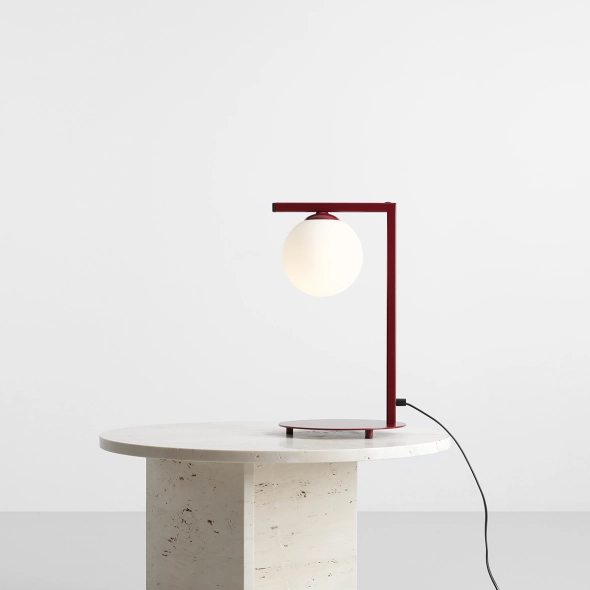 Niewielka lampka biurkowa w nietuzinkowym odcieniu czerwonego wina to funkcjonalny i estetyczny dodatek do każdego wnętrza. Owalny klosz o średnicy 14 cm równomiernie rozprasza światło, wprowadzając kameralną, przyjemną atmosferę. Doskonale sprawdzi się na biurku, komodzie lub stoliku nocnym, stanowiąc jednocześnie ciekawy akcent kolorystyczny.