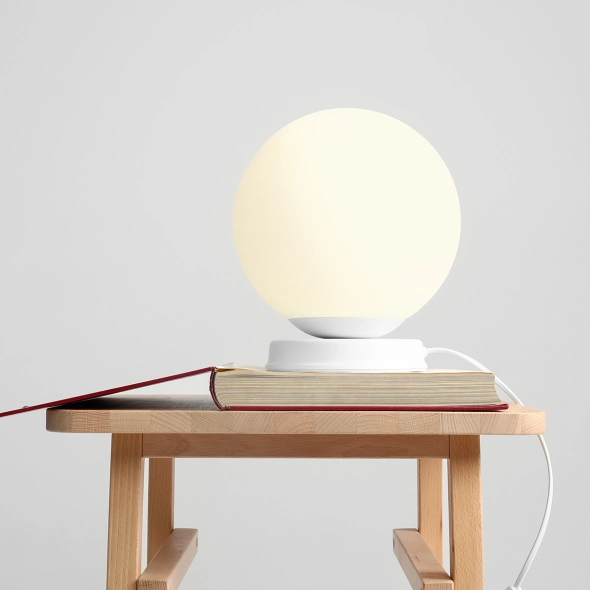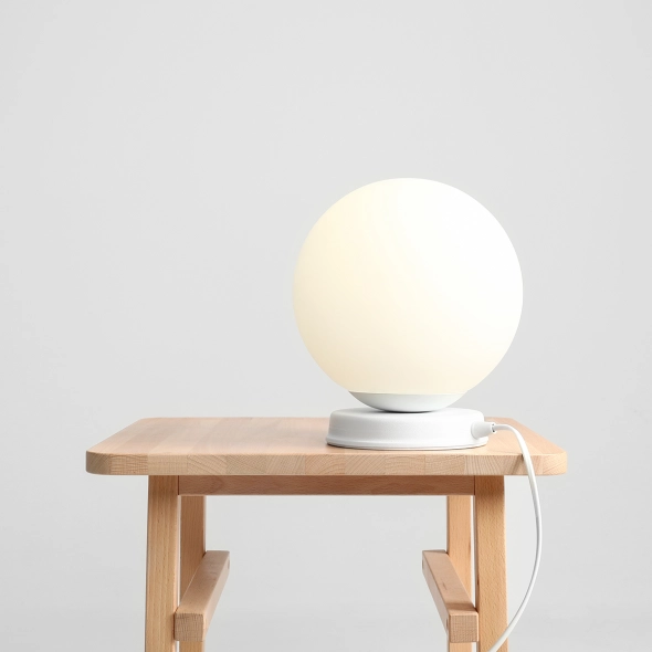 Lampka biurkowa Ball to propozycja oświetlenia na regał, komodę, szafkę nocną. Klimatyczna, pasująca do każdego rodzaju wnętrz, dająca przyjemne światło. Średnica klosza 20 cm.