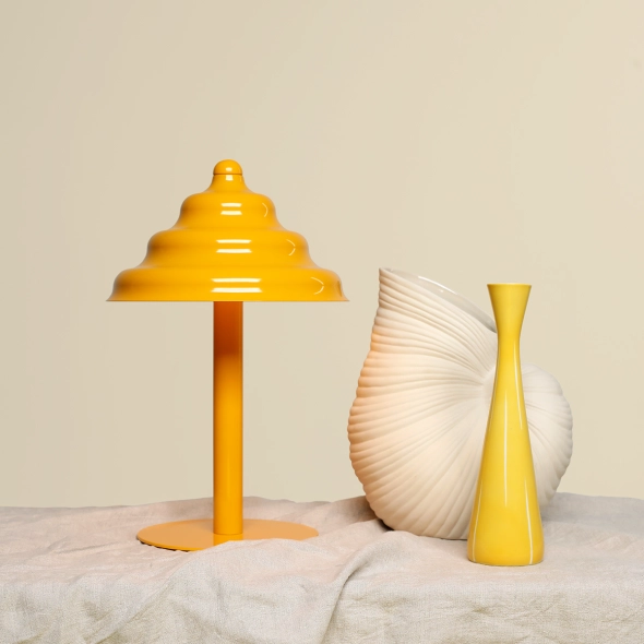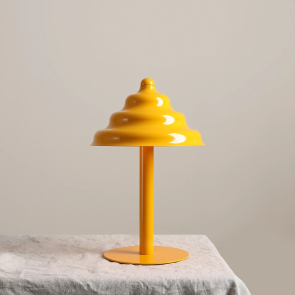 Lampka stołowa Fala projektu Nikodema Szpunara to połączenie falistego klosza, z którego wydobywa się światło skierowane w dół, z lekkim, ale stabilnym dołem dającym geometryczną równowagę. Lampa emituje miękkie, rozproszone światło, jest idealna na boczny stolik, półkę czy komodę. Lampa Fala, dzięki swojej retro kolorystyce i klasycznemu designowi, łączy nowoczesność i ponadczasowość. Świetnie sprawdzi się jako efektowny dodatek do domu, kawiarni, restauracji. Lampka na przewodzie w oplocie z włącznikiem światła. Żarówka jest zawarta w zestawie!