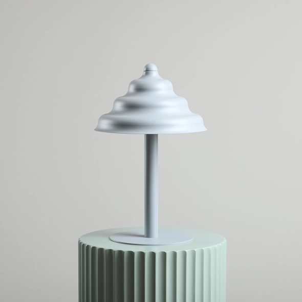 Lampka stołowa w kolorze błękitnej szarości z kolekcji FALA Szpunar x Artera