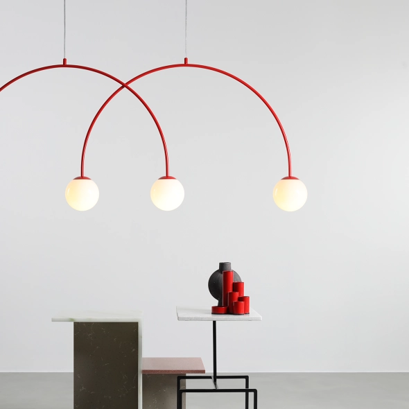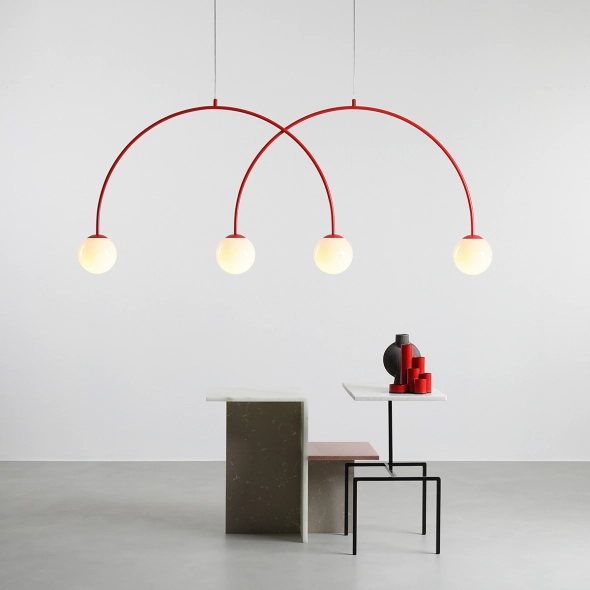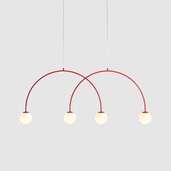 Lampa Una 4 w kolorze Red Chilli to wyrazisty akcent w każdym pomieszczeniu. Klosze wykonane z opalowego szkła nie tylko dobrze rozpraszają światło, ale również ciekawie kontrastują z intensywną oprawą w wyrazisty czerwonym kolorze.