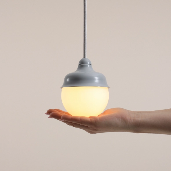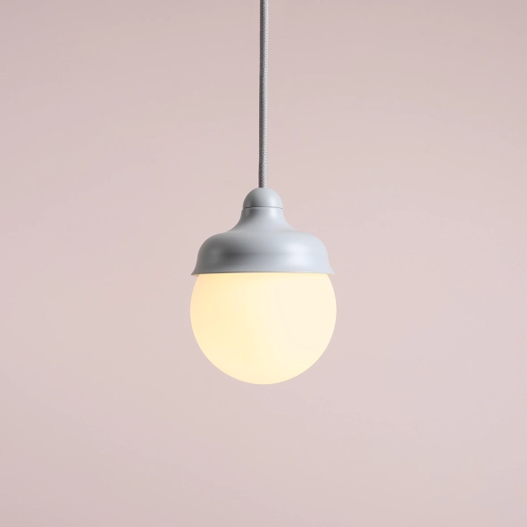 Urokliwa lampka wisząca Fala XS projektu Nikodema Szpunara, znajdująca zastosowanie w niewielkich przestrzeniach wymagających doświetlenia np. boki czy wezgłowia łóżek, blaty, oświetlenie boczne luster. Lampki mogą być używane samodzielnie lub w wielu kompozycjach. Uniwersalny szary kolor w satynowym wykończeniu, metalowy falisty klosz okrywający mleczną kulkę i starannie dobrany sznur w oplocie, to zalety tej oprawy. Produkt wykonany we własnym parku maszynowym.