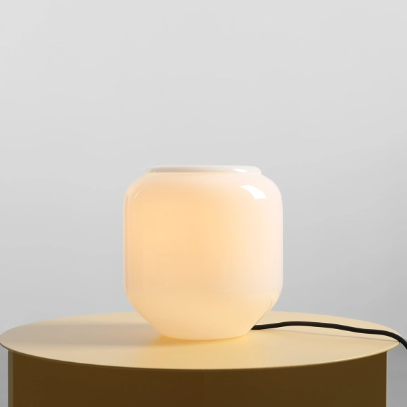 FLASK TABLE S ORCHID (proj. Mikołaj Nicer / Nicer Design) to mała, minimalistyczna lampa biurkowa z opalowego szkła, zaprojektowana tak, by liczyła się forma i miękkie oświetlenie. Mlecznobiały klosz subtelnie rozprasza światło, a po włączeniu zyskuje cieplejszą barwę, tworząc komfortową atmosferę do pracy i zapewniając kojącą barwę. Szklany „talerzyk” od góry osłania żarówkę, dzięki czemu lampa nie razi, ale nie traci światła. Czarny kabel z włącznikiem to mocny, elegancki detal, który świetnie pasuje do nowoczesnych i graficznych wnętrz. Rozmiar S ma 18 cm średnicy - idealny na biurko, stolik nocny lub półkę. W zestawie znajduje się wymienne źródło światła E14.