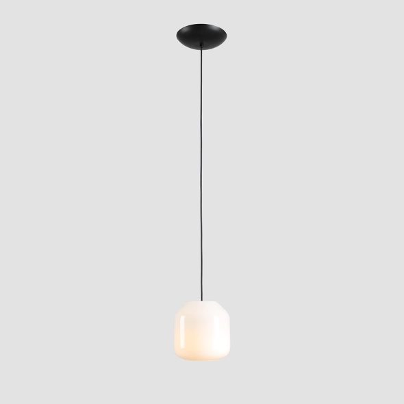 Lampa wisząca FLASK ORCHID S projektu Mikołaja Nicera (Nicer Design) to mała, minimalistyczna lampa z opalowego szkła, która świetnie odnajduje się w nowoczesnych, spokojnych wnętrzach. Mlecznobiały klosz o gładkiej powierzchni miękko rozprasza światło, a po zapaleniu zyskuje subtelnie kremowy ton, budując przyjemną atmosferę bez ostrego cienia. Czarny przewód i dopasowana kolorystycznie podsufitka dodają całości graficznej wyrazistości i eleganckiego kontrastu. Dzięki regulowanej długości kabla łatwo dopasujesz wysokość zawieszenia nad stolikiem, blatem lub w kompozycji kilku lamp. Rozmiar S (18 cm średnicy, 24 cm wysokości) to idealny wybór do mniejszych przestrzeni i punktowego oświetlenia. Lampa wyposażona jest w wymienne źródło światła E14, które znajduje się w zestawie.