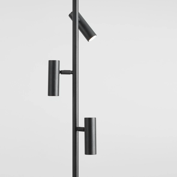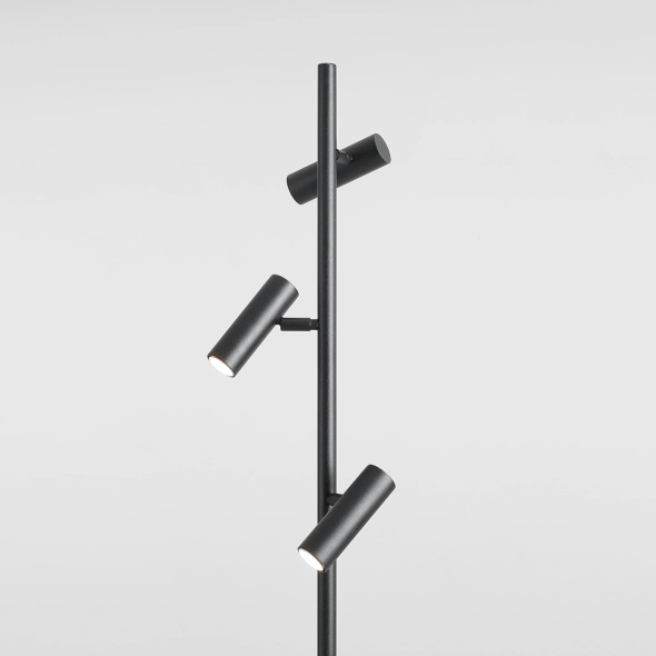 Minimalistyczna propozycja oświetlenia: lampa Trevo Floor w czarnym, matowym wykończeniu, to lampa stojąca z trzema ruchomymi kloszami w formie tuby o średnicy 3,7cm każdy, które pozwalają na dowolne ustawienie kąta padania światła. Niebanalny efekt wizualny, ciekawe wzornictwo i najwyższej jakości materiały zadowolą najbardziej wymagających klientów.