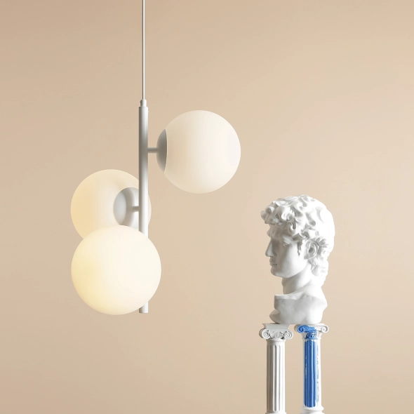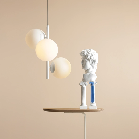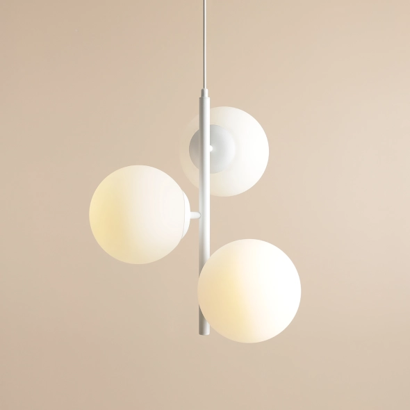 FIN 3 White M to minimalistyczna lampa wisząca w bieli z trzema kloszami o średnicy 20 cm, wykonanymi w polskiej hucie szkła. Rozproszone, miękkie światło tworzy przytulną atmosferę w salonie, jadalni czy sypialni. Lampa zawieszona jest na długim przewodzie, który można łatwo skrócić i dopasować do wysokości pomieszczenia. To idealny wybór do nowoczesnych i minimalistycznych aranżacji.