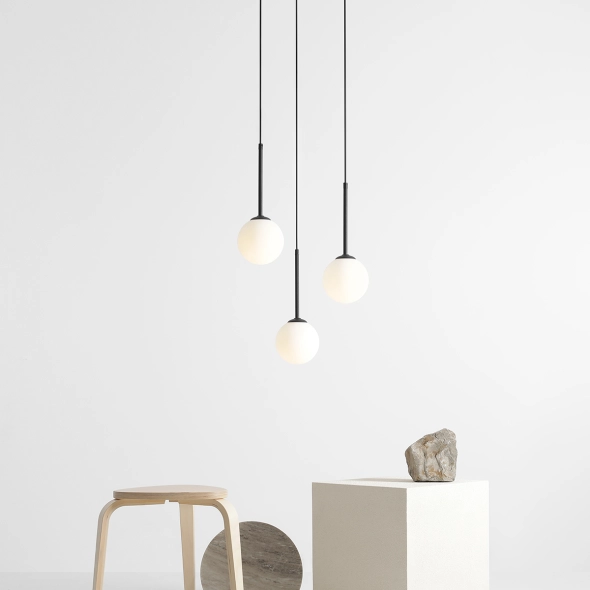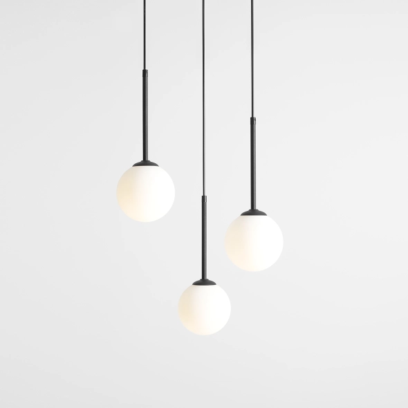 Czarna lampa wisząca na kole z kolekcji Bosso to lampa z trzema źródłami światła, która pięknie wypełni miejsce nad stołem, blatem lub w centralnym punkcie w pomieszczeniu. Standardowa wysokość wszystkich przewodów to 120 cm, jednak można je skrócić według własnego pomysłu i potrzeb aranżacji, uzyskując ciekawą, nieszablonową kompozycję punktów świetlnych.