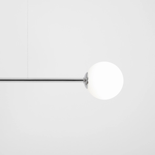 PURE 2 CHROME to nowoczesna lampa wisząca o eleganckim, chromowanym wykończeniu. Doskonała do współczesnych wnętrz, które cenią prostotę i styl. Jej subtelna forma pozwala na użycie w różnych przestrzeniach, od kuchni po biuro, dodając im blasku i nowoczesności.