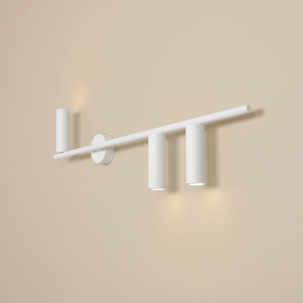 Nowoczesny kinkiet o prostej formie Trevo 3 All White to trzypunktowa lampa ścienna wykonana z najwyższej jakości materiałów i matowym wykończeniu. Gwint żarówki GU10/ fi 35mm. Prezentowana lampa jest modelem prawostronnym. Proponujemy również kinkiet lewostronny, co umożliwia zawieszenie lamp razem (efekt lustrzanego odbicia) np. nad wezgłowiem łóżka w sypialni.