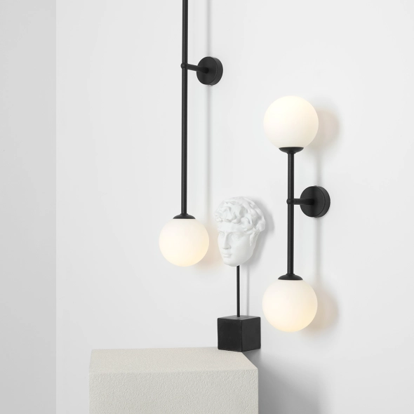 Aria to projekt oświetlenia, który zdecydowanie wpasuje się w modernistyczny styl panujący w świecie designu. Białe mleczne kule osadzone są na prostej konstrukcji oświetlając pomieszczenie przyjemnym, ciepłym światłem.