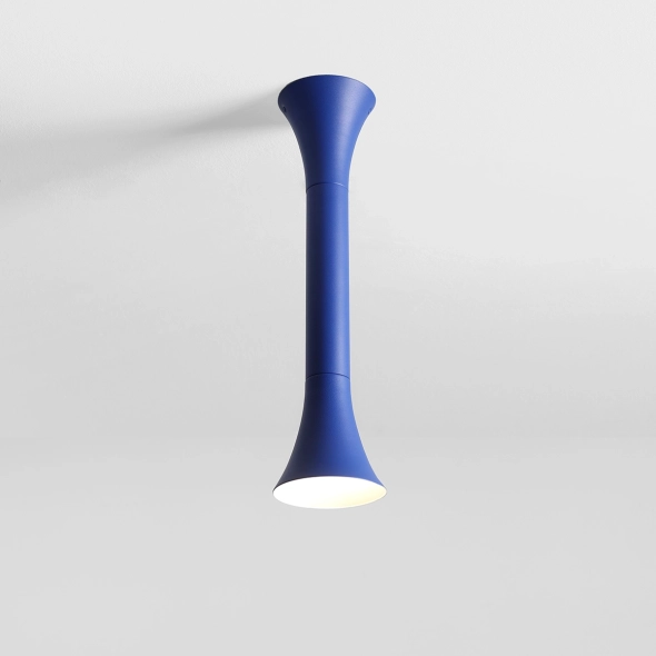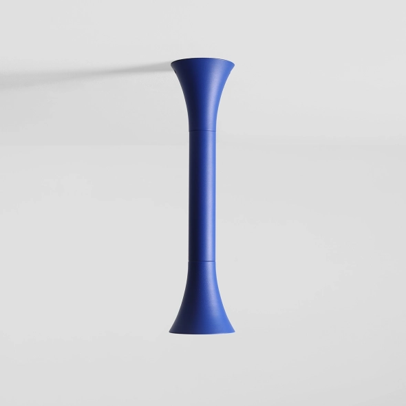 Plafon sufitowy Kibo Cobalt L (proj. Nikodem Szpunar) to wyrazista, a jednocześnie bardzo uporządkowana forma, która wprowadza do wnętrza głębię koloru i precyzję światła. Kobaltowy odcień Cobalt pięknie podkreśla geometryczną bryłę i dodaje jej szlachetnego, nowoczesnego charakteru. Stalowy klosz malowany proszkowo zachwyca jednolitą powierzchnią oraz trwałością wykończenia, a subtelne „otwarcie” ku dołowi nawiązuje do idei skupionego, kosmicznego światła obecnej w całej kolekcji Kibo.