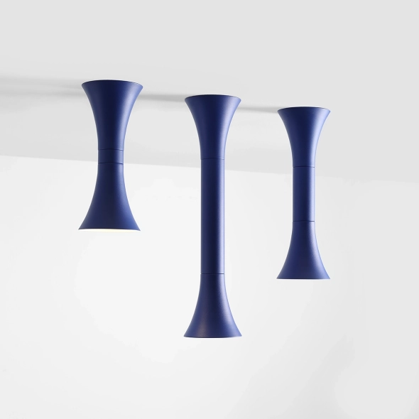 Wydłużona, smukła sylwetka (wysokość 42 cm) sprawia, że model L świetnie prezentuje się w większych przestrzeniach: w salonie, holu czy nad dłuższym ciągiem komunikacyjnym. To plafon, który buduje kompozycję sufitu jak detal architektoniczny - mocny, ale nie dominujący.