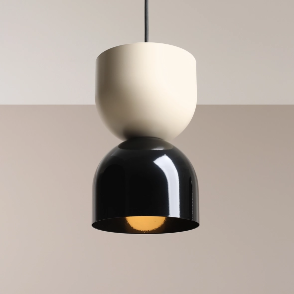 Lampa wisząca LUI z kolekcji modułowych lamp naszej marki to rozwiązanie dla zwolenników minimalizmu i symetrycznych form. Lampa posiada dwa jednakowej wielkości moduły, w dwóch wykończeniach kolorystycznych: czarny połysk i krem. Całość zwieńczona czarnym lub kremowym przewodem tekstylnym. Prosta konstrukcja umożliwia dowolne kombinacje montażu. Jasny klosz może być założony na górze (jak na zdjęciu), jak i na dole, czyli w odwrotnej kombinacji. Ta minimalistyczna lampa wisząca doskonale zaprezentuje się nisko zwieszona nad szafkami nocnymi, blatem lub stołem.