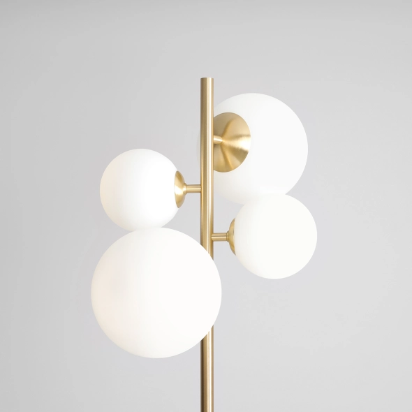 Nowoczesna lampa podłogowa z bestsellerowej kolekcji Bloom, to cztery mleczne klosze o dwóch średnicach (14 i 20cm) o matowym wykończeniu, które oplatają stelaż lampy. Lampy produkowane w Polsce z najwyższej jakości materiału- mosiądzu, poddawanego starannej obróbce- szczotkowaniu. Lampa stojąca Bloom świetnie sprawdzi się w sypialni, salonie czy gabinecie nadając wnętrzu przyjemny klimat.