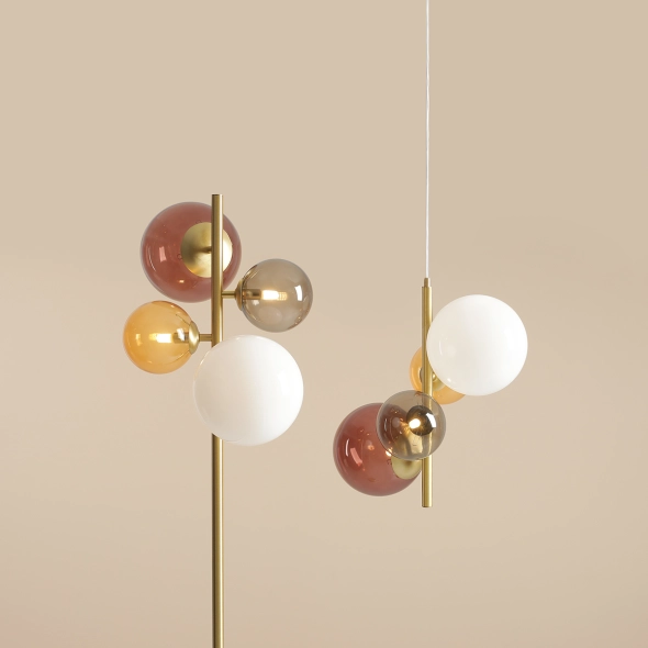 Oryginalna lampa podłogowa Bloom z różnokolorowymi kloszami, przywodzi na myśl bukiet kwiatów i tworzy niezwykłą atmosferę we wnętrzu. Bloom łączy w sobie unikalne i eleganckie wzornictwo z najwyższej jakości wykończeniem: szlachetny mosiądz poddany starannemu szczotkowaniu połączono z pięknymi, polskimi kloszami w ciepłej tonacji. Żarówki w komplecie.