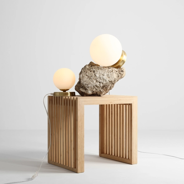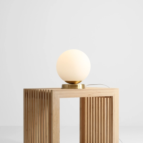 Subtelna i uniwersalna lampka Ball doczekała się nowej odsłony. Została wykonana ze szlachetnego materiału poddanego obróbce: szczotkowaniu mosiądzu. Dzięki temu uzyskaliśmy efekt matowego, przetartego, jasnego złota, który czyni lampkę efektownym detalem we wnętrzu. Ball występuje w dwóch rozmiarach: Medium (klosz fi 20 cm) i Small (klosz fi 14cm).