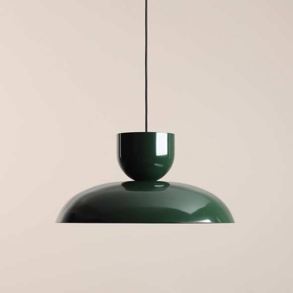 Nadaj niepowtarzalnego charakteru swojemu wnętrzu dzięki dużej lampie wiszącej ELLA w wyjątkowym ciemnozielonym wykończeniu. Ta efektowna lampa z serii Modular wyróżnia się dwoma metalowymi kloszami – dolnym o imponującej średnicy 47 cm oraz górnym, o średnicy 15 cm. Czarny przewód w tekstylnym oplocie (dark) subtelnie podkreśla kontrastowe barwy kloszy. ELLA to idealny wybór nad stół w jadalni, do przestronnego salonu lub stylowej kuchni – tam, gdzie liczy się design i nieszablonowe rozwiązania.