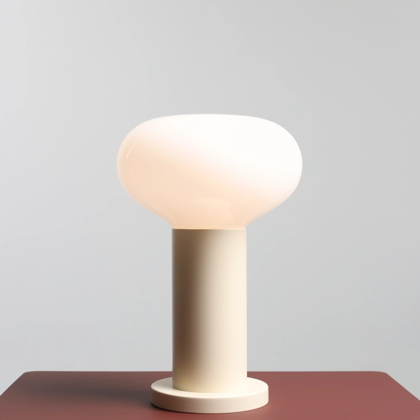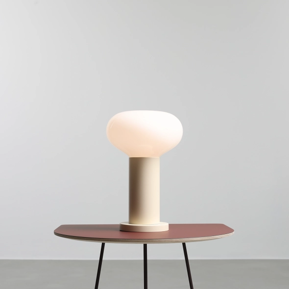 Nowoczesna lampa biurkowa w subtelnym, kremowym kolorze FLO TABLE CREAM S proj. Sedno Studio