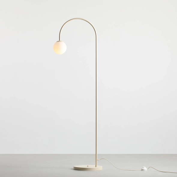 Nietuzinkowa lampa stojąca UNA Cream w oryginalnym kształcie łuku i delikatnym, śmietankowym wykończeniu to ciekawy element dekoracyjny oraz dodatkowe źródło światła w modnym wnętrzu. Obłe, przyjemne dla oka formy i staranne wykończenie lampy tj. polskie, opalowe szkło, satynowy lakier proszkowy oraz przewód w oplocie w kolorze stelaża lampy są gwarantem najwyższej jakości i dbałości o każdy szczegół.