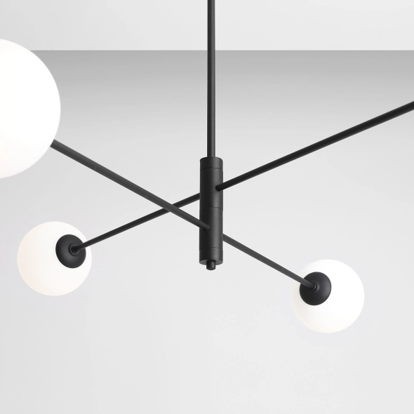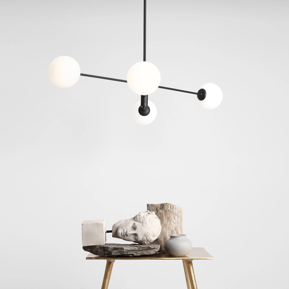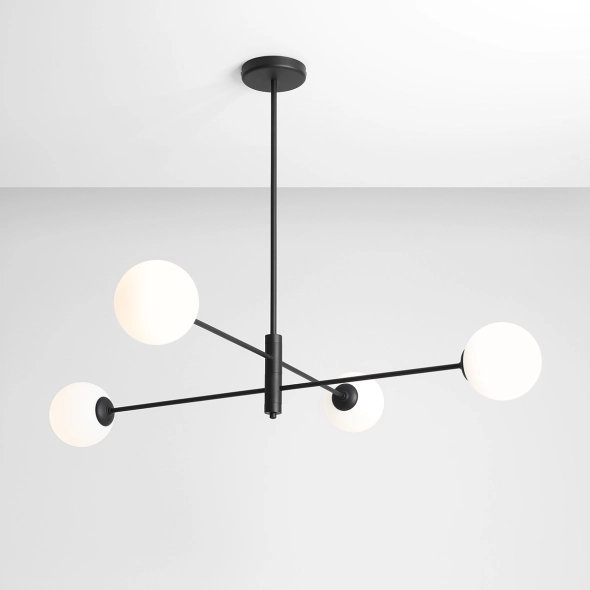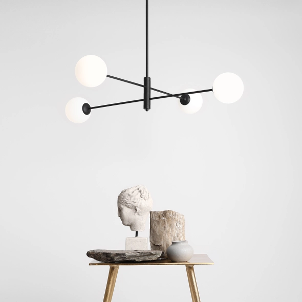 Lampa sufitowa Homme to funkcjonalne rozwiązanie na oświetlenie nowoczesnego salonu, biura, pokoju dziennego. Lampa posiada cztery mleczne, matowe, kuliste klosze równomiernie wydobywające światło z wnętrza. Szeroki zakres regulacji ramion umożliwia dowolne ich rozłożenie. Kolekcja Homme świetnie współgra z lampami z serii Ohio.