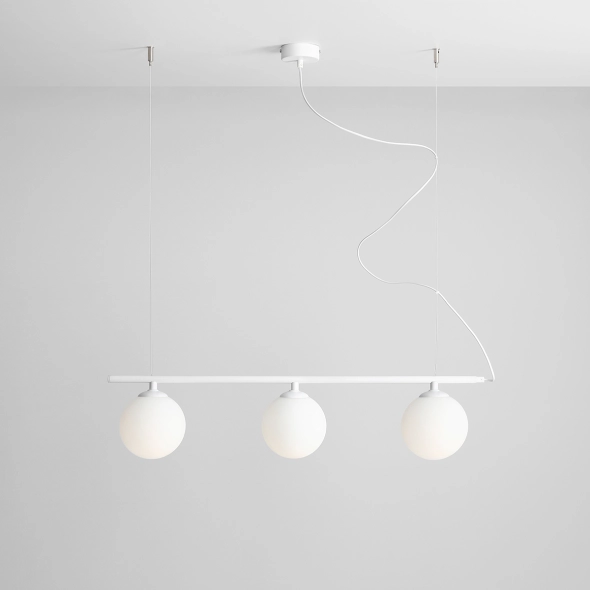 Nowoczesna, trzypunktowa lampa wisząca z kolekcji Beryl Glass to żyrandol, którego zwieńczeniem są trzy matowe kuliste klosze. Światło wydobywające się z wnętrza jest równomiernie rozproszone, gwarantując stałe oświetlenie do każdego pomieszczenia. Dzięki minimalistycznemu designowi, lampa wpasuje się w każde wnętrze, stanowiąc subtelny i funkcjonalny dodatek.