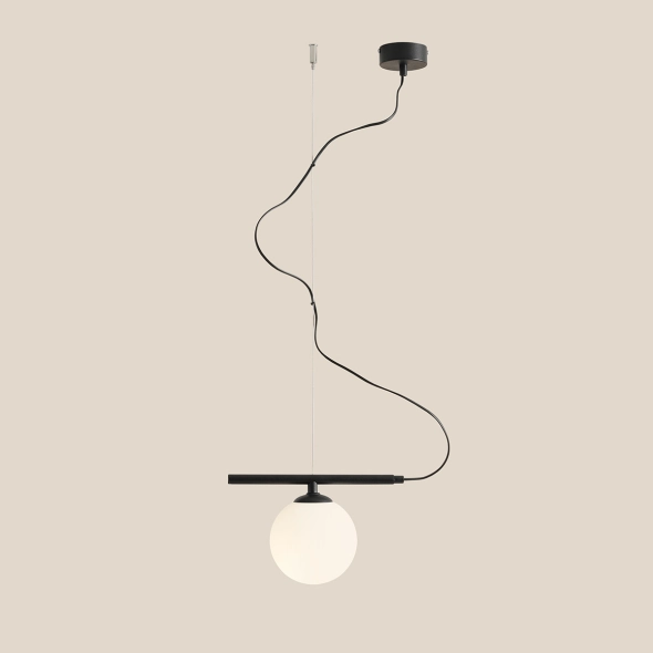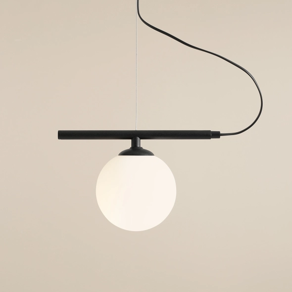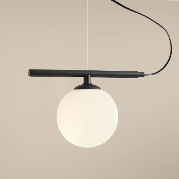 Lampa wisząca BERYL GLASS BLACK 1 to propozycja dla miłośników minimalizmu i nowoczesnych form. Pojedynczy, kulisty klosz o białym, matowym wykończeniu subtelnie rozprasza światło, tworząc przytulną atmosferę w pomieszczeniu. Metalowe elementy w czarnym, matowym kolorze dodają lampie wyrazistości i elegancji. Idealna do wnętrz w stylu nowoczesnym, skandynawskim oraz industrialnym. Doskonale sprawdzi się jako oświetlenie stołu, wyspy kuchennej lub kącika wypoczynkowego.