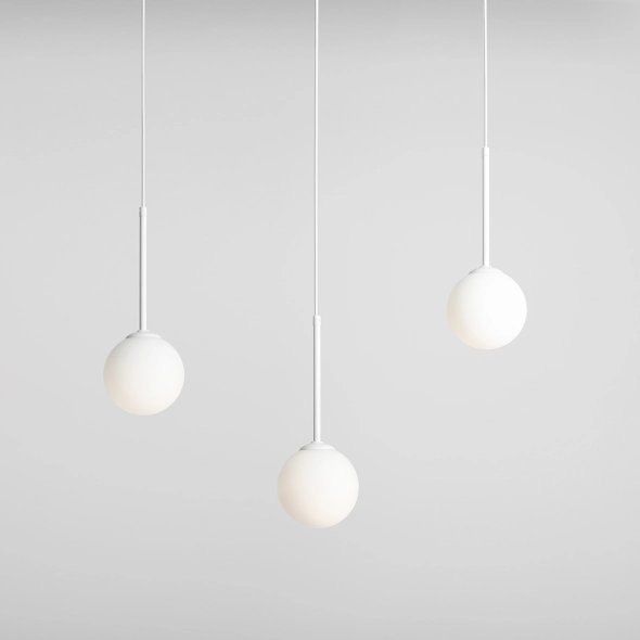 Lampa wisząca BOSSO 3 WHITE to nowoczesna, trzypunktowa oprawa idealna nad stół, wyspę kuchenną lub blat roboczy. Białe, matowe wykończenie i mleczne klosze z opalowego szkła tworzą harmonijną, elegancką kompozycję. Przewody o długości 120 cm można dopasować do indywidualnych potrzeb, uzyskując ciekawą, zróżnicowaną formę świetlną. BOSSO 3 WHITE to połączenie minimalizmu, funkcjonalności i ponadczasowego designu.