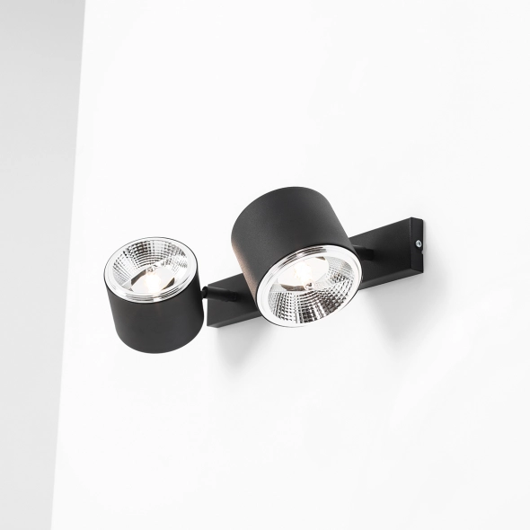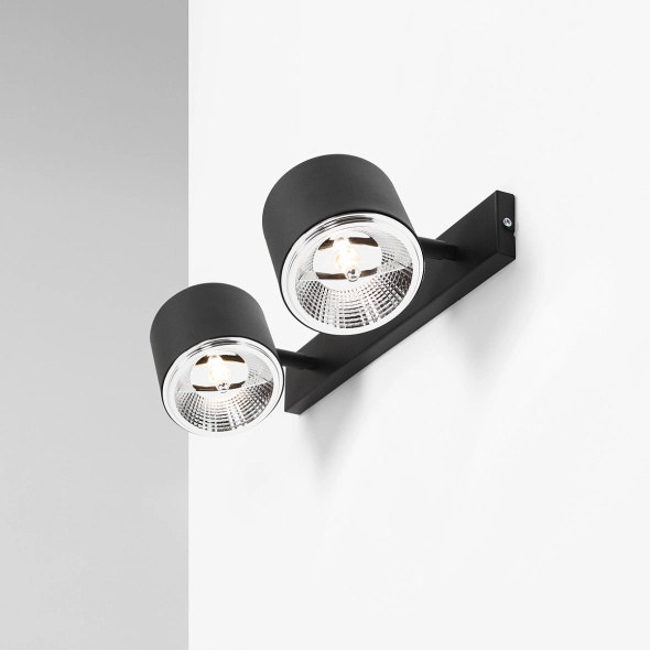 Kinkiet z serii Bot Black z dwoma reflektorami (żarówki sprzedawane oddzielnie) to stylowe i funkcjonalne oświetlenie o uniwersalnym, minimalistycznym charakterze. Metalowe klosze, osadzone na ruchomych przegubach, pozwalają precyzyjnie kierować światło w wybrane miejsca. Doskonale sprawdzi się jako oświetlenie strefy pracy, salonu lub korytarza, dodając wnętrzu elegancji i lekkości.