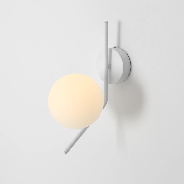 Lampka ścienna z kolekcji Gallia to niewielki, zgrabny kinkiet tworzący nastrojowe światło we wnętrzu. Matowy, mleczny klosz równomiernie rozprasza światło we wnętrzu. Lampa doskonale prezentuje się nad wezgłowiami łóżek w sypialni, a także nad komodami lub przy lustrach.