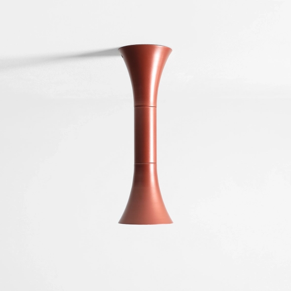 KIBO CEILING RUSTY w rozmiarze M łączy minimalistyczną formę z głębokim, ceglastym kolorem. Odcień rusty dodaje wnętrzu wyrazistości i doskonale komponuje się zarówno z nowoczesnymi, jak i industrialnymi aranżacjami. Rzeźbiarski klosz subtelnie modeluje strumień światła, tworząc komfortowe oświetlenie codzienne. To plafon, który pełni zarówno funkcję użytkową, jak i dekoracyjną. Źródło światła GU10 znajduje się w zestawie.