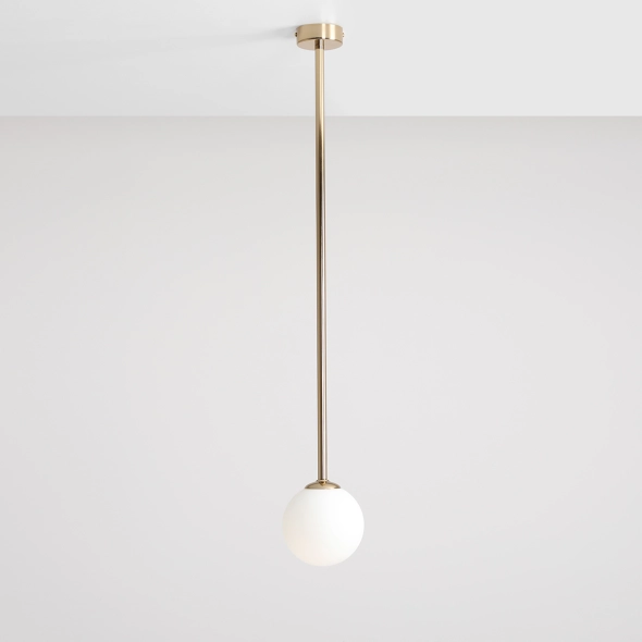Stylowa lampa PINNE 1 LONG GOLD to najdłuższy plafon z kolekcji PINNE, który łączy nowoczesny minimalizm z luksusowym wykończeniem w odcieniu złota. Cylindryczny korpus zakończony szklanym, kulistym kloszem o średnicy 14 cm zapewnia nastrojowe, rozproszone światło. Idealna do eleganckich salonów, sypialni lub przestrzeni komercyjnych, w których liczy się design i jakość wykonania.