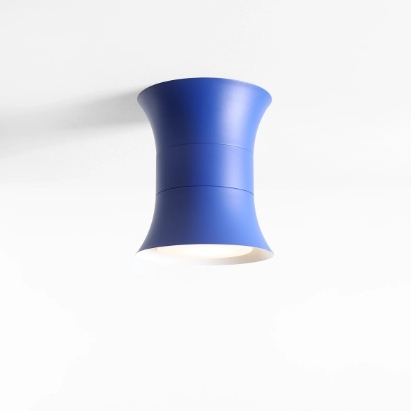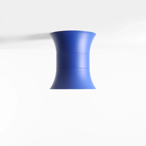 Kibo Cobalt M to kobaltowy akcent w najbardziej uniwersalnym formacie. Intensywny kolor podkreśla geometrię projektu, a krótka, „pełniejsza” bryła sprawia, że plafon wygląda solidnie i dopracowanie - designersko, ale bez przesady. Subtelne rozszerzenie ku dołowi porządkuje światło: jest miękkie, skupione i przyjemne w codziennym użytkowaniu.