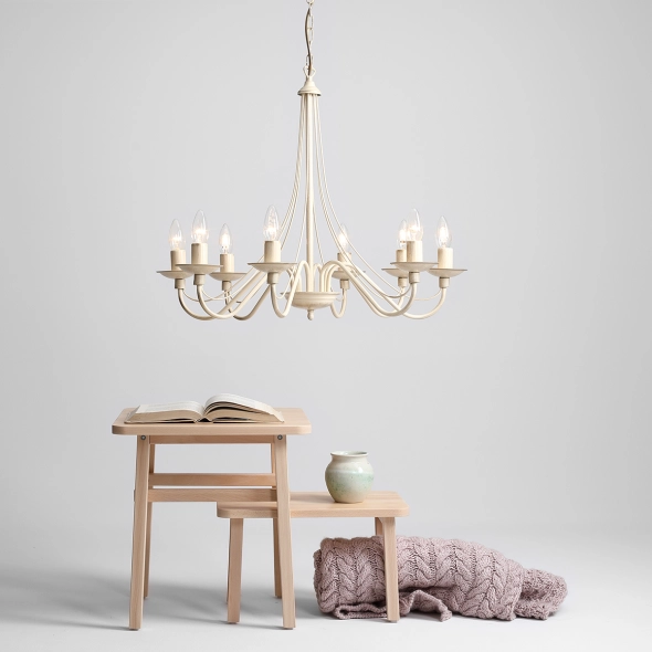 Klasyczny żyrandol świecznikowy RÓŻA 8 PROVANCE to ośmioramienna lampa wisząca w eleganckim, kremowym kolorze z delikatnym efektem postarzenia. Stylizowane ramiona i subtelne wykończenie sprawiają, że lampa doskonale wpisuje się w aranżacje prowansalskie, rustykalne i klasyczne. To idealny wybór do salonu, jadalni lub przestronnego holu, gdzie stanie się centralnym punktem wystroju, dodając wnętrzu klimatu francuskiej elegancji i ponadczasowego uroku.