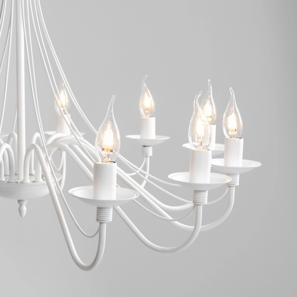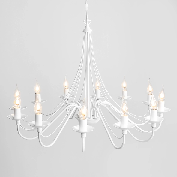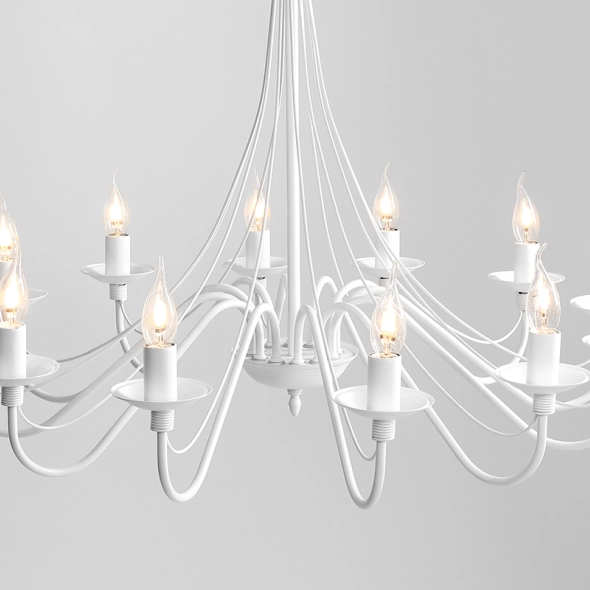 Piękny, klasyczny dwunastoramienny żyrandol o ponadczasowym zagięciu ramion, idealnie komponujący się w jadalniach i salonach urządzonych we francuskim stylu. Rozłożyste, szerokie, klasyczne a zarazem delikatne ramiona powodują, że ta lampa zostanie królową wnętrza. Kolekcja bogato uzupełniona o żyrandole wieloramienne, kinkiety, duże i małe lampki stołowe, lampę podłogową.