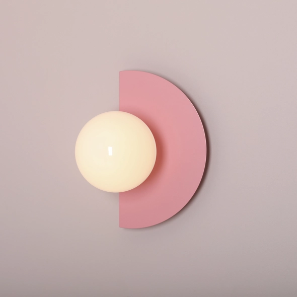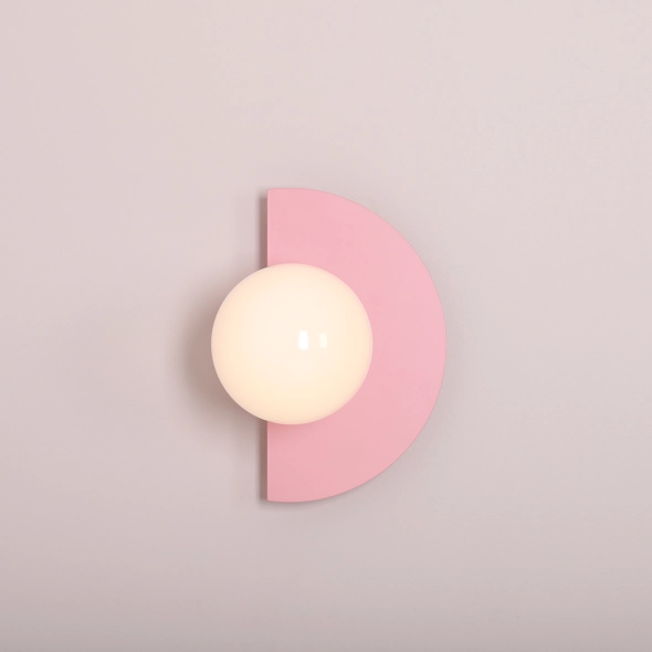 Loop Wall w pasetlowym kolorze Baby Pink to propozycja o wyrafinowanej i spokojnej estetyce. Delikatny odcień różu dodaje wnętrzom subtelności i świeżości, jednocześnie zachowując nowoczesny charakter. Półkolisty dysk w połączeniu z opalowym kloszem tworzy harmonijną kompozycję, która pięknie rozprasza światło, tworząc przytulną atmosferę. To idealny dodatek do wnętrz w stylu minimalistycznym, skandynawskim lub loftowym, a również do pokoju dziecięcego.