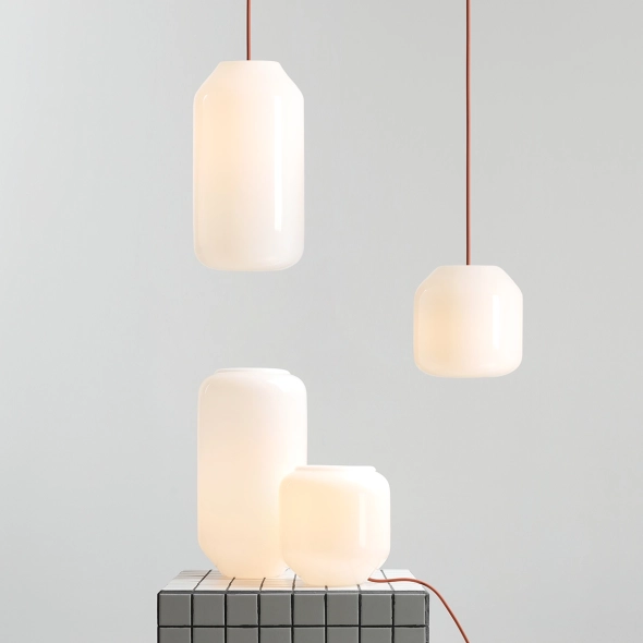 Kolekcja FLASK, zaprojektowana przez Mikołaja Nicera (Nicer Design), to pochwała prostoty, która nie potrzebuje dekoracji, by przyciągać uwagę. Jej sercem jest czysta, opalowa bryła szkła, pozbawiona widocznych mocowań, technicznych detali i zbędnych elementów. Pozostaje to, co najważniejsze: forma, proporcja i światło. Inspiracją stały się klasyczne butelki na mleko i ich archetypiczny kształt, przetworzony w elegancką esencję. Jedna idea, rozwinięta w czterech rozmiarach, pozwala tworzyć spójne, a jednocześnie elastyczne kompozycje świetlne. Minimalistyczną całość kolekcji dopełnia możliwość wyboru koloru kabla z szerokiej palety.