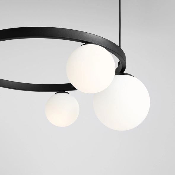 Stylowa lampa wisząca o niebanalnym, nowoczesnym designie pięknie rozświetli przestrzeń nad stołem w salonie lub jadalni. Chętnie wybierana również jako oświetlenie holu, wiatrołapu. Klasyczna forma okręgu przełamana ciekawie rozłożonymi kloszami o dwóch średnicach: 14 i 20cm.