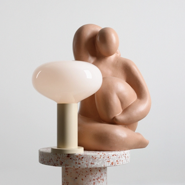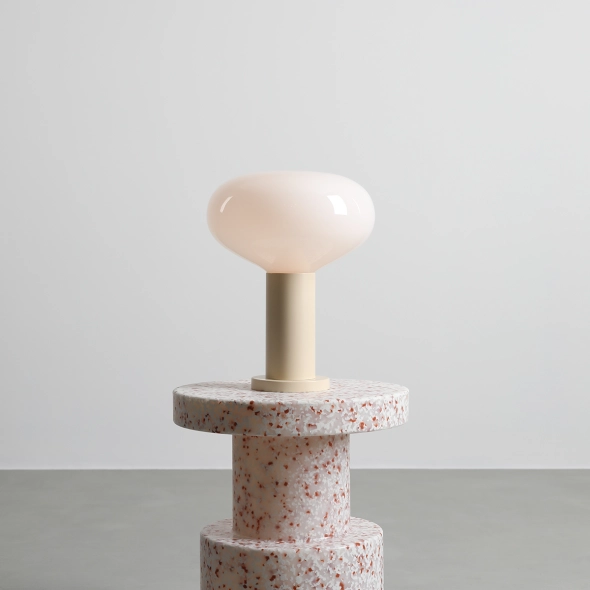 Szeroka lampka biurkowa w kolorze delikatnego kremu FLO TABLE CREAM M proj. Sedno Studio