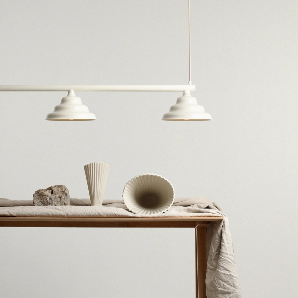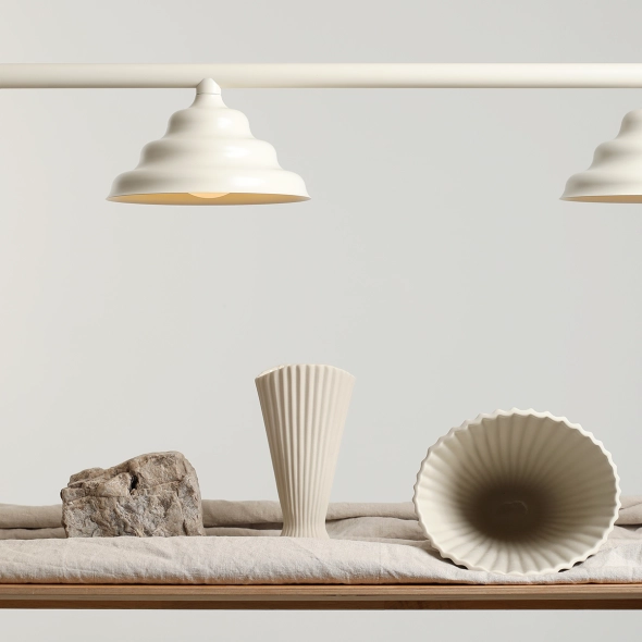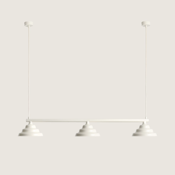 FALA 3 w kolorze delikatnego kremu to trzypunktowa lampa wisząca, która łączy klasyczną formę z subtelnym wyrafinowaniem. Lekkość kształtów, elegancja kloszy i delikatny połysk sprawiają, że lampa wprowadza do wnętrza harmonię i ciepło. Metalowe klosze kryją szklane kule, w których znajdują się źródła światła G9. Przewody można dowolnie skracać, dopasowując lampę do idealnej wysokości. Model ten doskonale sprawdzi się nad stołem, barem lub wyspą kuchenną, zarówno w domowych, jak i publicznych przestrzeniach. Projekt autorstwa Nikodema Szpunara, wykonany z dbałością o każdy detal przez polską markę Artera.