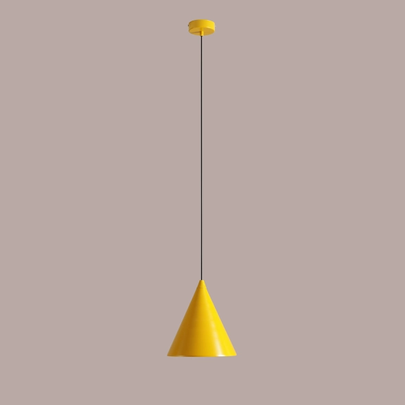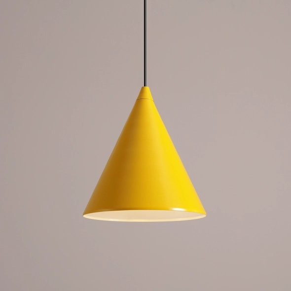 FORM MUSTARD to wyrazista lampa wisząca w ciepłym, musztardowym odcieniu. Stożkowy klosz o geometrycznej formie, wykończony w satynowej powierzchni, nadaje pomieszczeniu energii i oryginalności. Idealna do ożywienia wnętrz takich jak jadalnie, kuchnie czy pokoje dzienne. Czarne zawieszenie podkreśla nowoczesny charakter lampy.