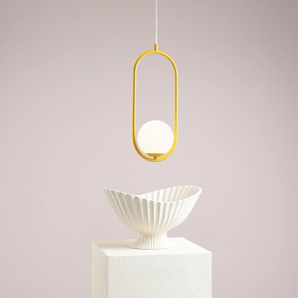 Subtelna, smukła lampa wisząca Riva sprawdzi się jako źródło światła i element dekoracyjny nowoczesnej sypialni, jadalni lub salonu. Światło wydobywające się z wnętrza lampy jest równo rozproszone. Zdecydowany, żółty kolor w odcieniu jasnej musztardy to ciekawy akcent kolorystyczny we wnętrzach. Na życzenie klienta możemy wydłużyć przewód ponad standard, gdyż lampa ciekawie wygląda nisko zwieszona np. nad szafkami nocnymi. Dla osób ceniących kontrasty, przewód może zostać wymieniony na czarny.
